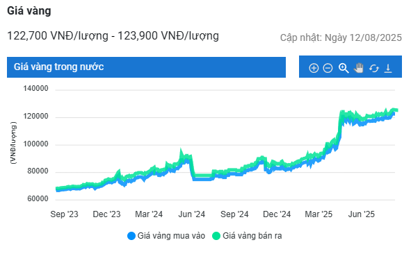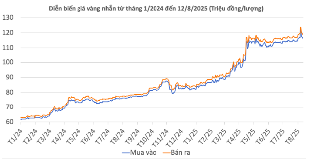 | Giá vàng nhẫn 99,99 | 12/8/2025 | Thay đổi (nghìn đồng/lượng) | ||