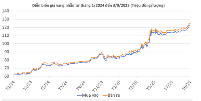 | Giá vàng nhẫn 99,99 | 3/9/2025 | Thay đổi (nghìn đồng/lượng) | ||