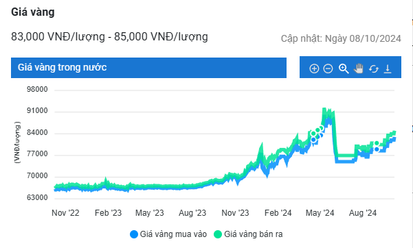 | Giá vàng SJC | 8/10/24 | Thay đổi (nghìn đồng/lượng) | |||