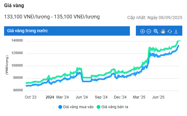 Sau điều chỉnh, giá vàng hôm nay giảm còn 132,1 - 133,1 triệu đồng ở chiều mua vào và 135,1 triệu đồng ở chiều bán ra.
