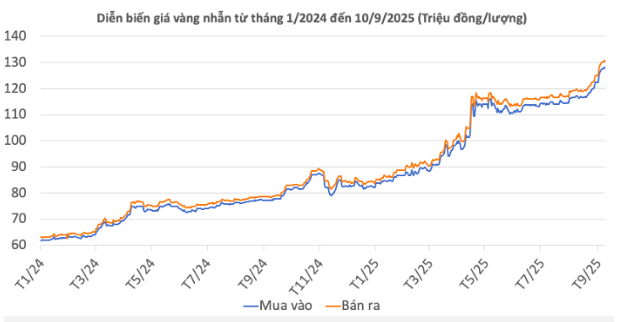 | Giá vàng nhẫn 99,99 | 10/9/2025 | Thay đổi (nghìn đồng/lượng) | ||