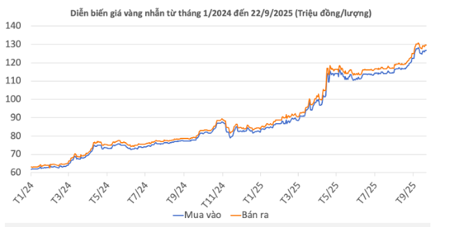 | Giá vàng nhẫn 99,99 | 22/9/2025 | Thay đổi (nghìn đồng/lượng) | ||
