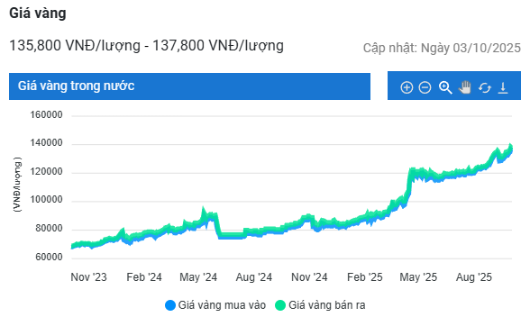 Trong phiên giao dịch sáng ngày 3/10, thị trường phục hồi. Tại thời điểm 7h15 (giờ Việt Nam), giá vàng giao ngay tăng 0,12% lên 3.860 USD/ounce, theo kitco, và giá vàng giao tháng 12 tăng 0,39% lên 3.883 USD.