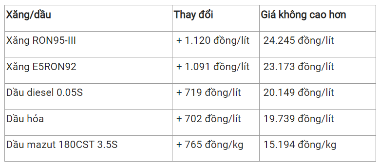 Theo đó, sau khi thực hiện việc trích lập và chi sử dụng quỹ Bình ổn, giá bán các mặt hàng xăng dầu tiêu dùng phổ biến trên thị trường như sau: