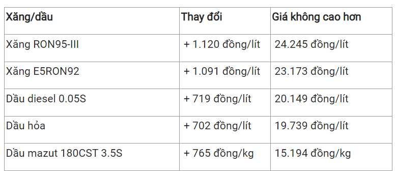 Theo đó, sau khi thực hiện việc trích lập và chi sử dụng quỹ Bình ổn, giá bán các mặt hàng xăng dầu tiêu dùng phổ biến trên thị trường như sau: