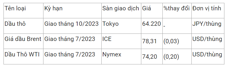 Giá dầu thô ngọt nhẹ WTI của Mỹ giảm 0,2% xuống 74,2 USD/thùng vào lúc 7h25 (giờ Việt Nam), trong khi giá dầu thô Brent giao tháng 7 giảm 0,03% lxuống 78,31 USD/thùng.