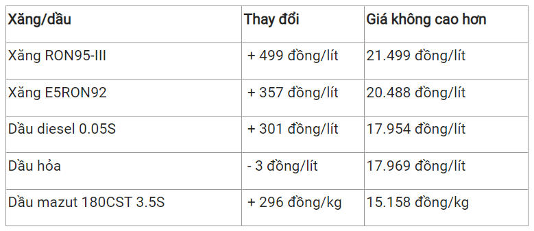 Theo đó, sau khi thực hiện việc trích lập và chi sử dụng quỹ Bình ổn, giá bán các mặt hàng xăng dầu tiêu dùng phổ biến trên thị trường như sau: