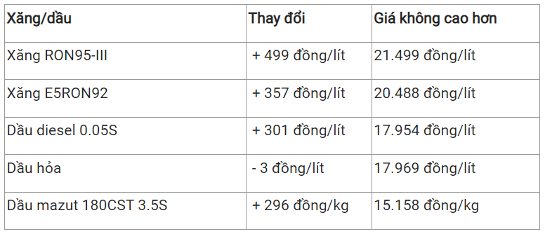 Theo đó, sau khi thực hiện việc trích lập và chi sử dụng quỹ Bình ổn, giá bán các mặt hàng xăng dầu tiêu dùng phổ biến trên thị trường như sau: