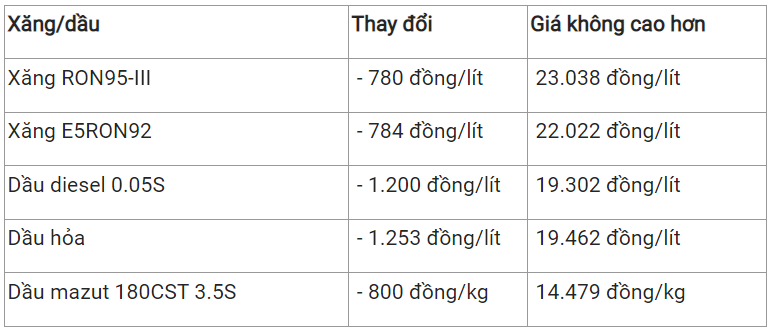 Theo đó, sau khi thực hiện việc trích lập và chi sử dụng quỹ Bình ổn, giá bán các mặt hàng xăng dầu tiêu dùng phổ biến trên thị trường như sau:
