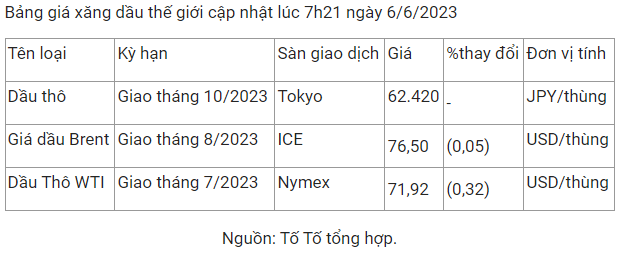 Bảng giá xăng dầu thế giới cập nhật lúc 7h21 ngày 6/6/2023