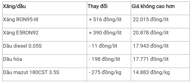 Theo đó, sau khi thực hiện việc trích lập và chi sử dụng quỹ Bình ổn, giá bán các mặt hàng xăng dầu tiêu dùng phổ biến trên thị trường như sau: