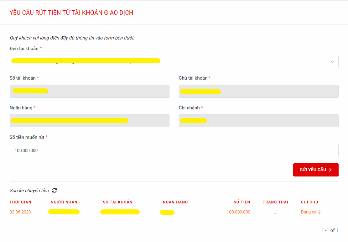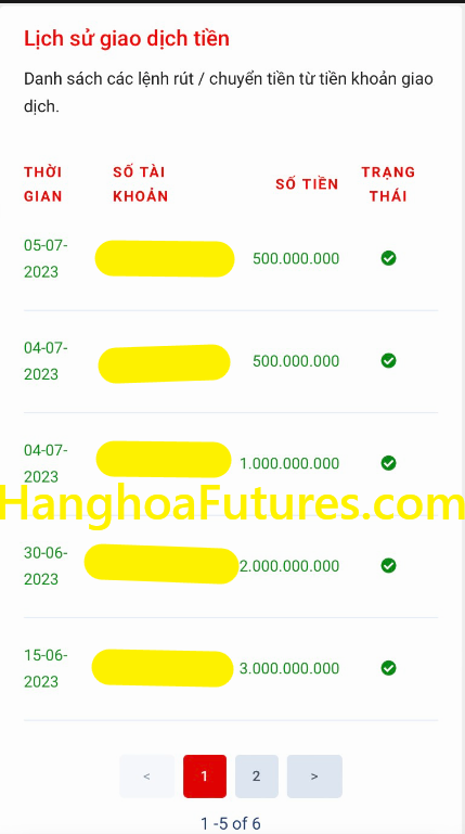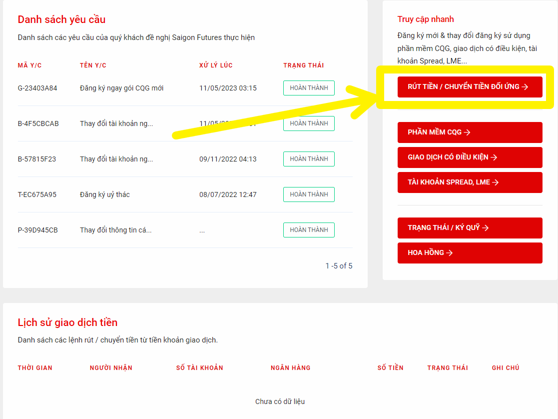 - Tài khoản thụ hưởng sẽ bắt buộc chính chủ và phải khớp với Hồ sơ Pháp lý/Hợp đồng đã cung cấp cho Saigon Futures.