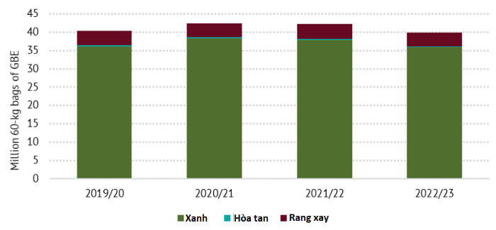 Chủng loại cà phê xuất khẩu trong 4 tháng đầu niên vụ 2022-2023