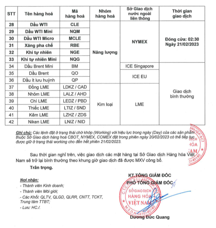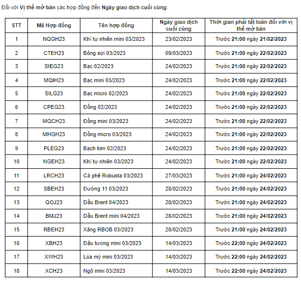 + Thị trường Kim loại và Năng lượng đóng cửa sớm (vào lúc 02:30 ngày thứ Ba, 21/02/2023)