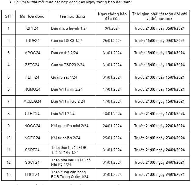 Đối với Vị thế mở MUA các hợp đồng đến Ngày thông báo đầu tiên