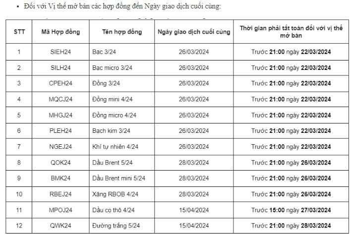 II. Lịch Tất Toán tại Sở Giao dịch Hàng Hóa Việt Nam:
