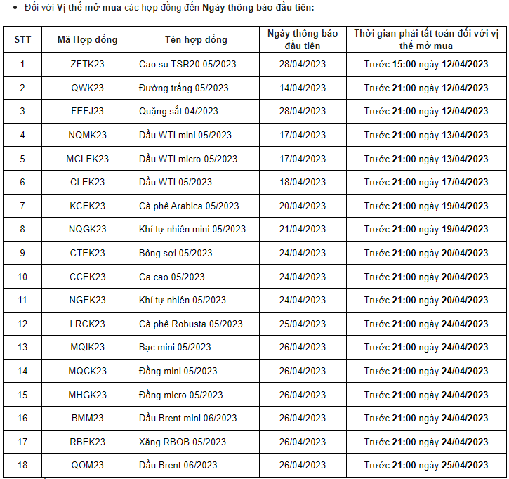 -Đối với Vị thế mở mua các hợp đồng đến Ngày thông báo đầu tiên: