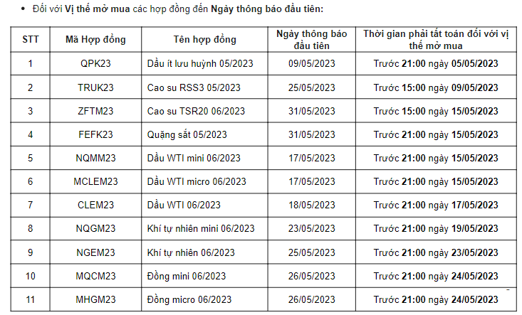 - Đối với Vị thế mở mua các hợp đồng đến Ngày thông báo đầu tiên