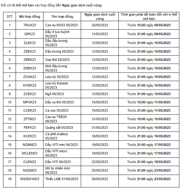 -Đối với Vị thế mở bán các hợp đồng đến Ngày giao dịch cuối cùng: