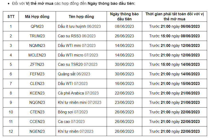 Đối với Vị thế mở mua các hợp đồng đến Ngày thông báo đầu tiên