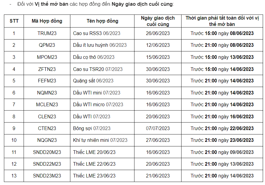 -Đối với Vị thế mở bán các hợp đồng đến Ngày giao dịch cuối cùng: