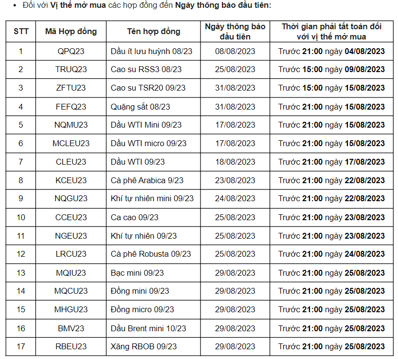 Đối với Vị thế mở mua các hợp đồng đến Ngày thông báo đầu tiên