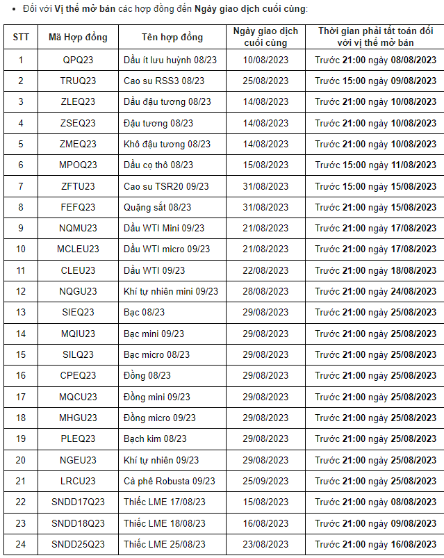 II. Lịch Tất Toán tại Sở Giao dịch Hàng Hóa Việt Nam: