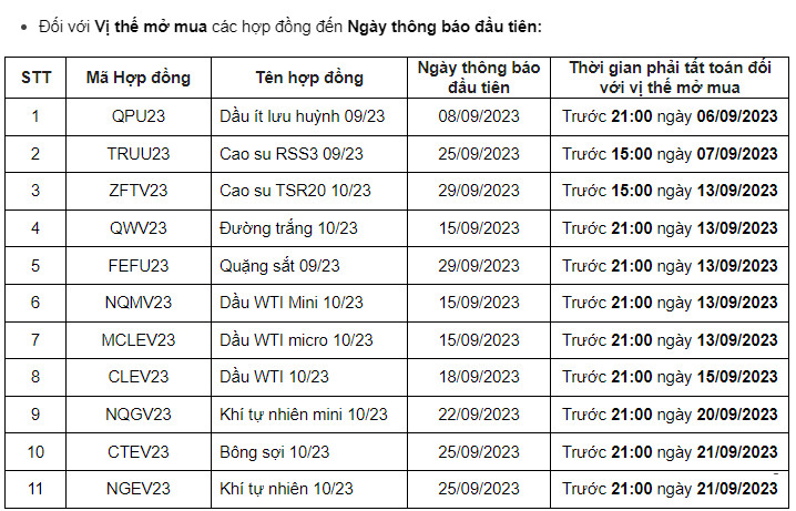 Đối với Vị thế mở mua các hợp đồng đến Ngày thông báo đầu tiên