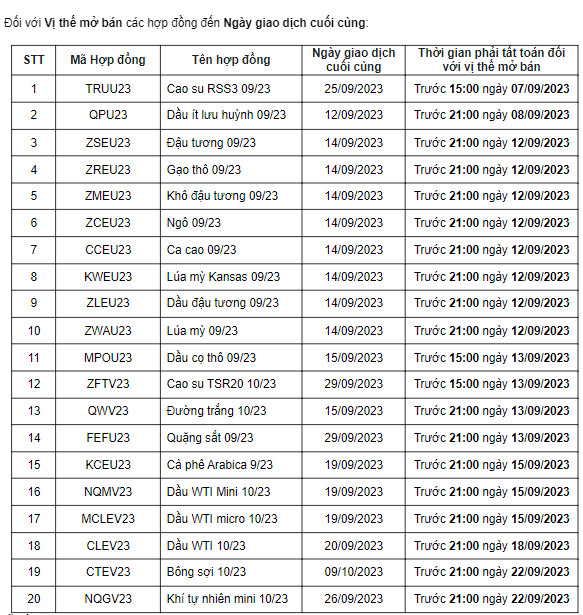 -Đối với Vị thế mở bán các hợp đồng đến Ngày giao dịch cuối cùng:
