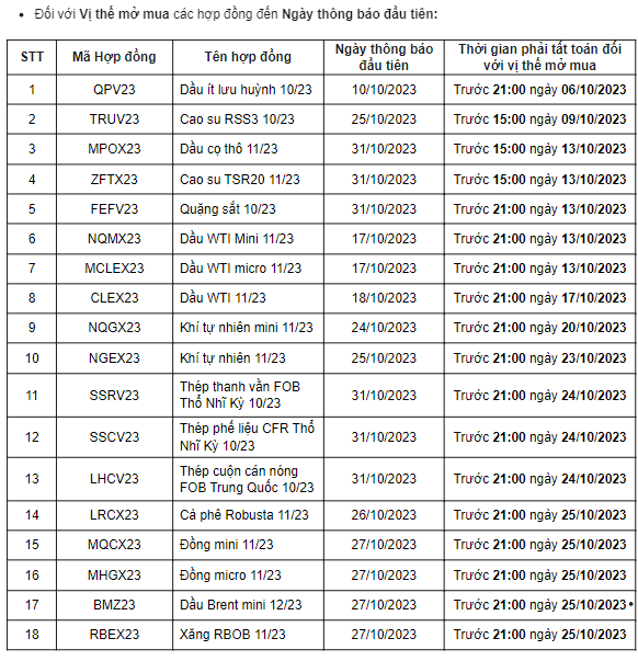 Đối với Vị thế mở mua các hợp đồng đến Ngày thông báo đầu tiên