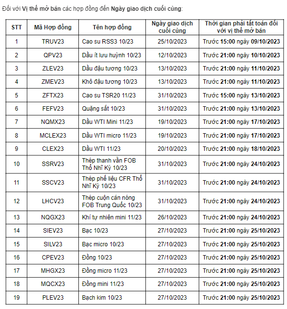 -Đối với Vị thế mở bán các hợp đồng đến Ngày giao dịch cuối cùng: