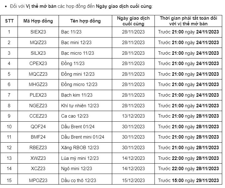 -Đối với Vị thế mở BÁN các hợp đồng đến Ngày giao dịch cuối cùng: