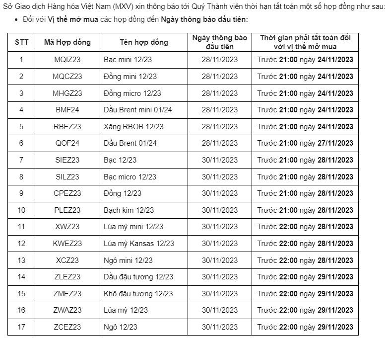 I. Lịch Tất Toán tại Sở Giao dịch Hàng Hóa Việt Nam: