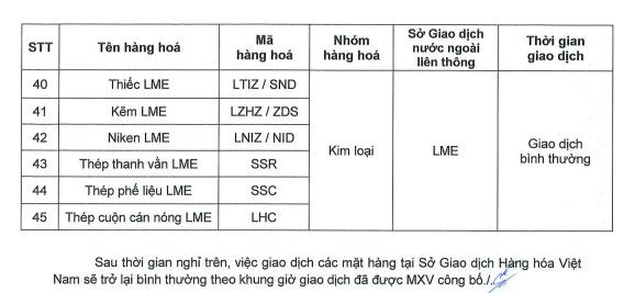 Lịch nghỉ giao dịch một số mặt hằng tại Sở giao dịch Hàng hóa Việt Nam liên thông với Sở nước ngoài