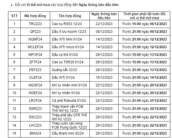 Đối với Vị thế mở mua các hợp đồng đến Ngày thông báo đầu tiên
