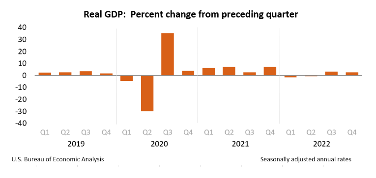 GDP quý 4 năm 2022 (ước tính lần 02) điều chỉnh giảm xuống 2,7% từ 2,9%, dường như phần lớn từ sự điều chỉnh do lạm phát.