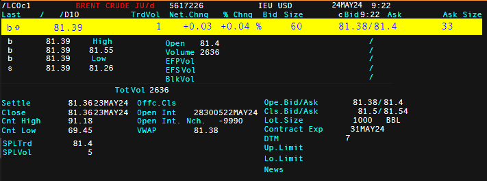• LCOc1: Ký hiệu hiện là Dầu Brent trên sàn ICE tháng 07/2024 (QON24)