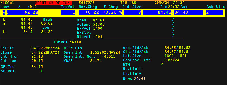• LCOc1: Ký hiệu hiện là Dầu Brent trên sàn ICE tháng 07/2024 (QON24)