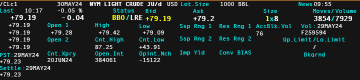 • CLc1: Ký hiệu hiện là Dầu WTI tháng 07/2024 (CLEN24)