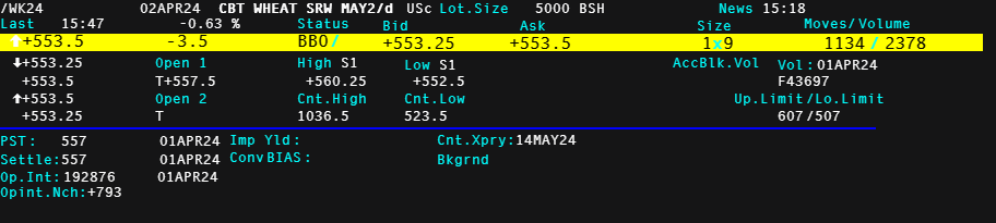 - WK24: Ký hiệu, hiện là Lúa mì tháng 05/2024 (ZWAK24)