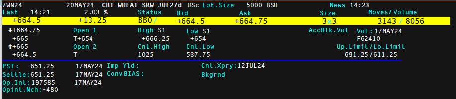 🎑 Lưu ý: Sản phẩm giao dịch/Trade nên lựa chọn là Lúa mì tháng 07/2024 (ZWAN24) hoặc Lúa mì tháng 09/2024 (ZWAU24) hoặc Lúa mì tháng 12/2024 (ZWAZ24).