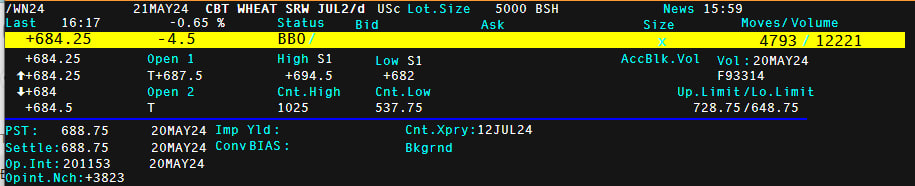 • WN24: Ký hiệu, hiện là Lúa mì tháng 07/2024 (ZWAN24)