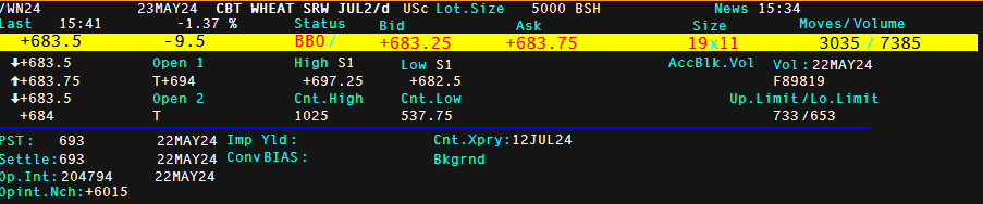 • WN24: Ký hiệu, hiện là Lúa mì tháng 07/2024 (ZWAN24)