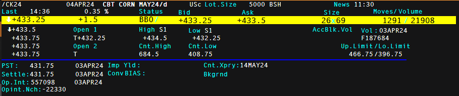 🌽 Lưu ý: Sản phẩm giao dịch/Trade nên lựa chọn là Ngô tháng 05/2024 (ZCEK24) hoặc Ngô tháng 06/2024 (ZCEN24).