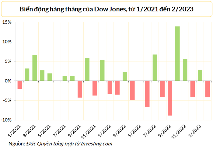 Những năm gần đây, thị trường biến động khá mạnh vào tháng 3. Cụ thể, Dow Jones mất 13,7% vào tháng 3/2020, bật tăng 6,6% vào tháng 3/2021 rồi tăng 2,3% vào tháng 3 năm ngoái.