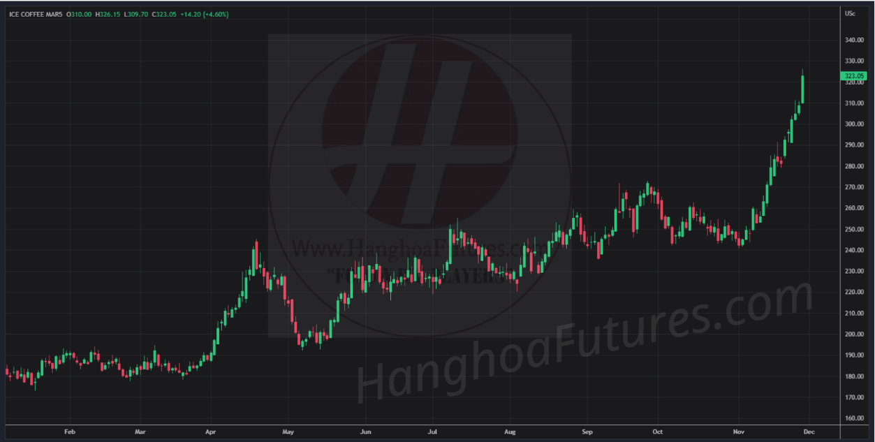 London, ngày 27 tháng 11 năm 2024 - Giá chuẩn cà phê Arabica thế giới đã tăng lên trên 3,20 đô la một pound vào thứ Tư, đạt mức cao nhất trong gần nửa thế kỷ khi nông dân tại Brazil tiếp tục giữ hàng hóa và các nhà đầu cơ gia tăng hoạt động.