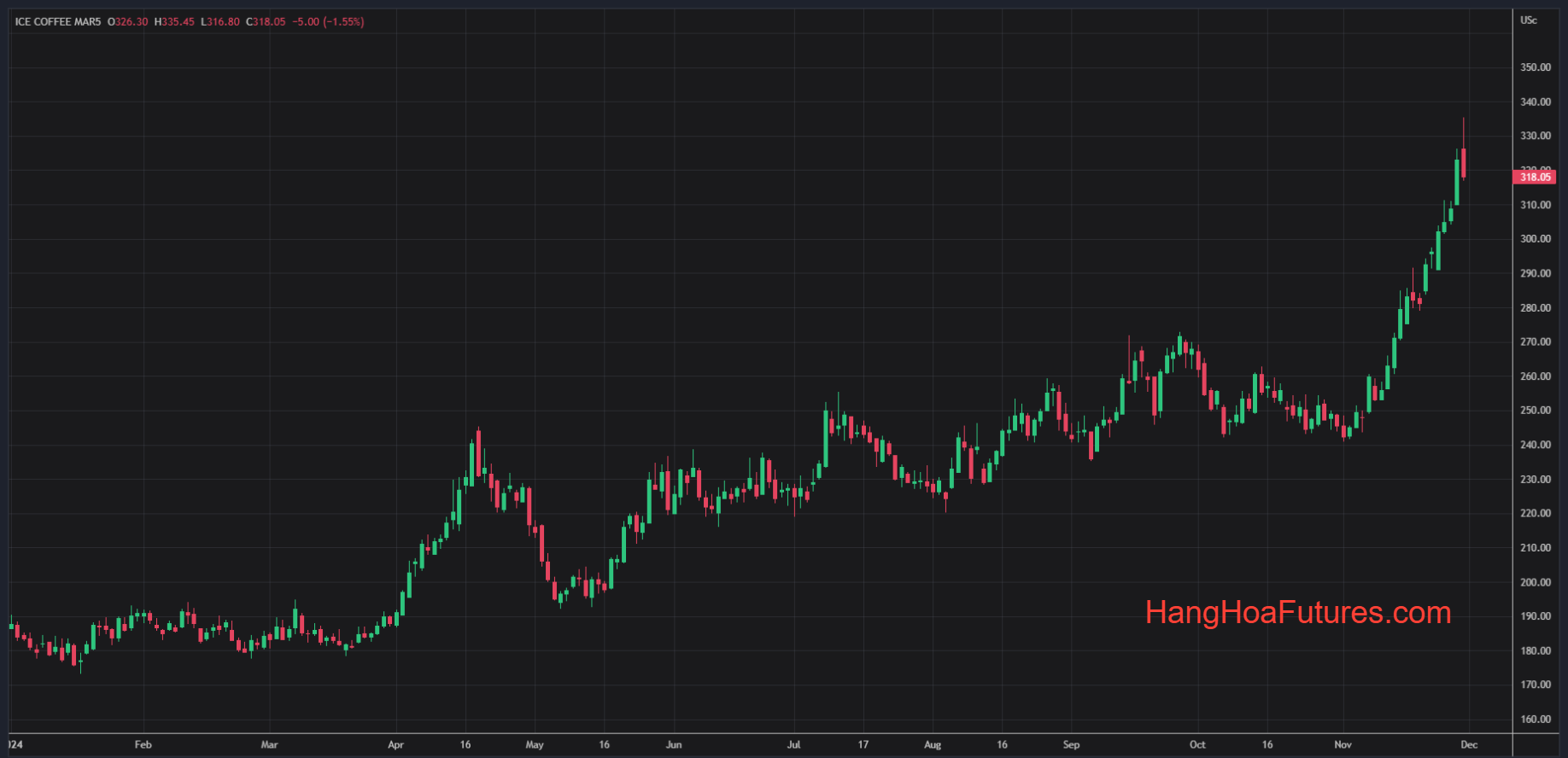 Brazil, Ngày 29 tháng 11 năm 2024 - Giá cà phê đã giảm vào thứ Sáu sau khi đạt mức cao nhất trong gần nửa thế kỷ trong phiên giao dịch, do nguồn cung bị thắt chặt trong bối cảnh vụ mùa năm sau tại Brazil – quốc gia sản xuất cà phê lớn nhất thế giới – đang gặp khó khăn trong việc phục hồi hoàn toàn từ đợt hạn hán năm nay.