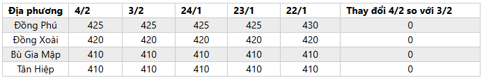 - Giá mủ nước và mủ chén thu mua tại Bình Phước tiếp tục không đổi.
