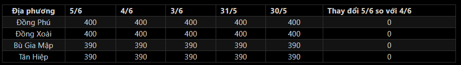 - Giá mủ chén không đổi so với hôm trước.