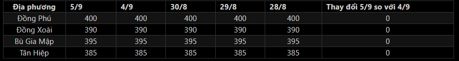 - Giá mủ nước thu mua tại Bình Phước không đổi.